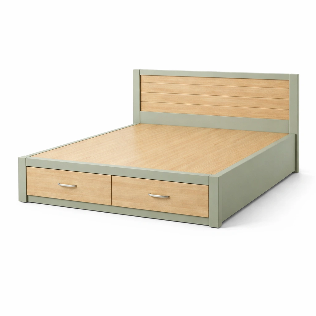 Bett mit Stauraum MDF Holzbett Schubladen Natur Grün