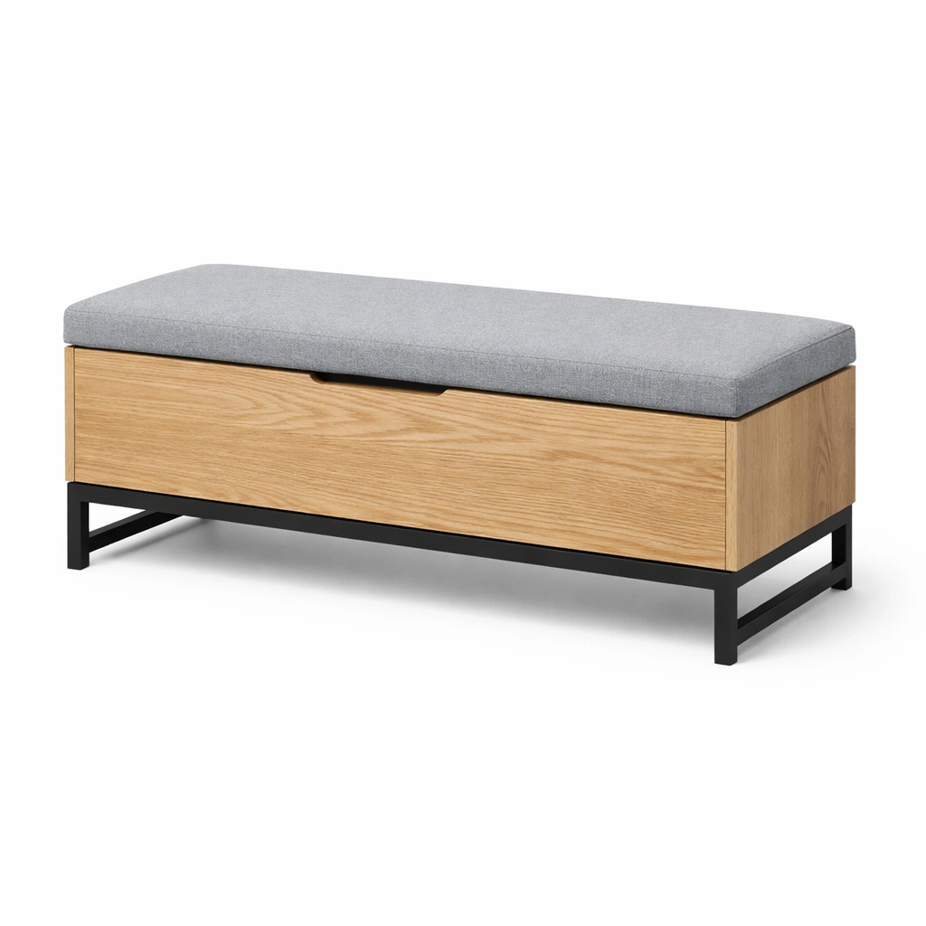 Sitzbank mit Stauraum Eichenfurnier Polyester Metall Grau